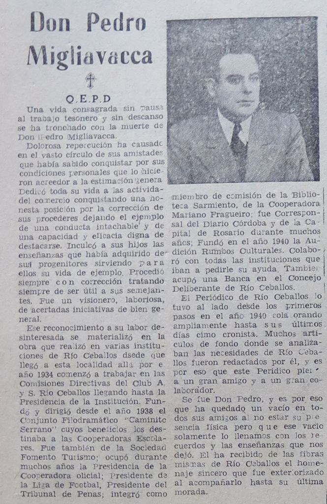 Ocupó la presidencia del Concejo Deliberante de Río Ceballos de 1952 a 1955.