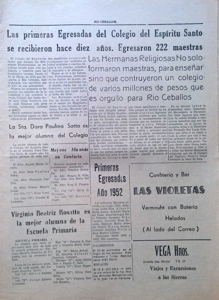 Egresó como docente en la primera promoción de Colegio Espíritu Santo en el año 1952.