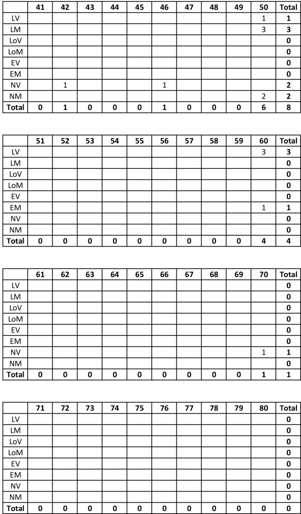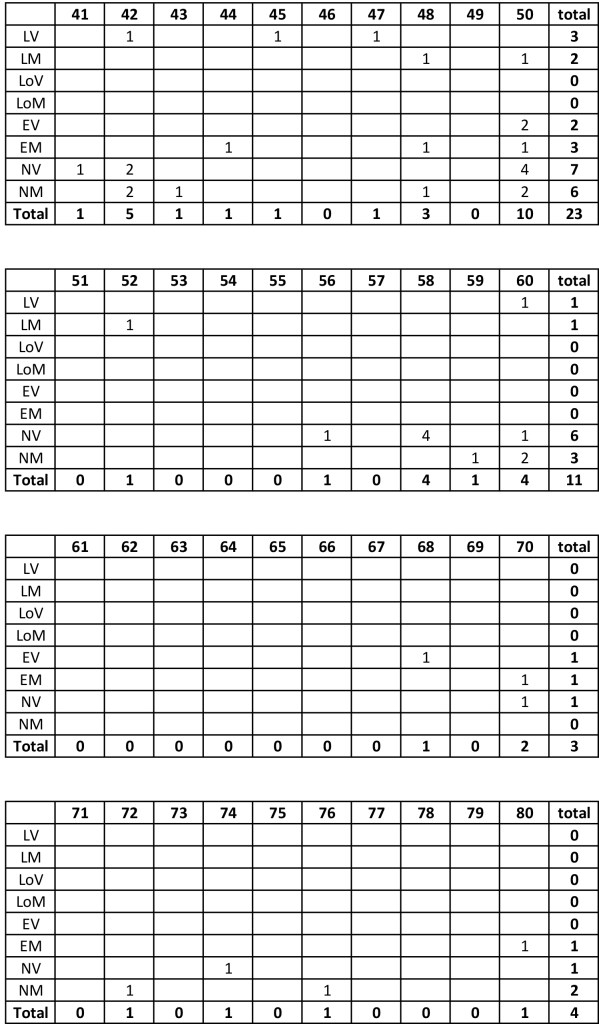 Cuadros de población según condición/edad en base al censo ordenado y corregido cuyos gráficos se encuentran en el libro mencionado: