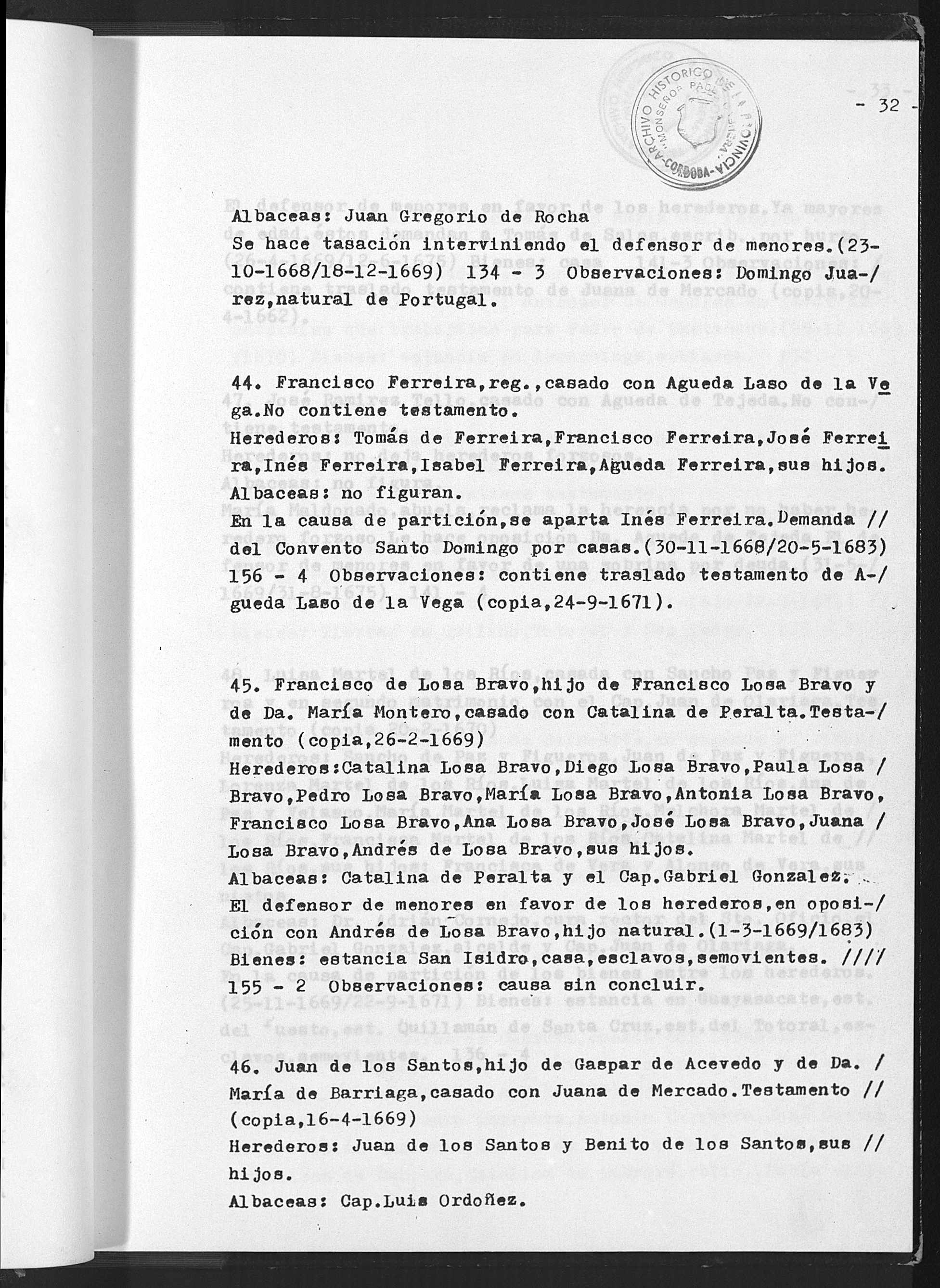 Disputa por tierras de la Estancia San Isidro entre los hijos legítimos y un hijo natural del Capitán Francisco de Losa Bravo.